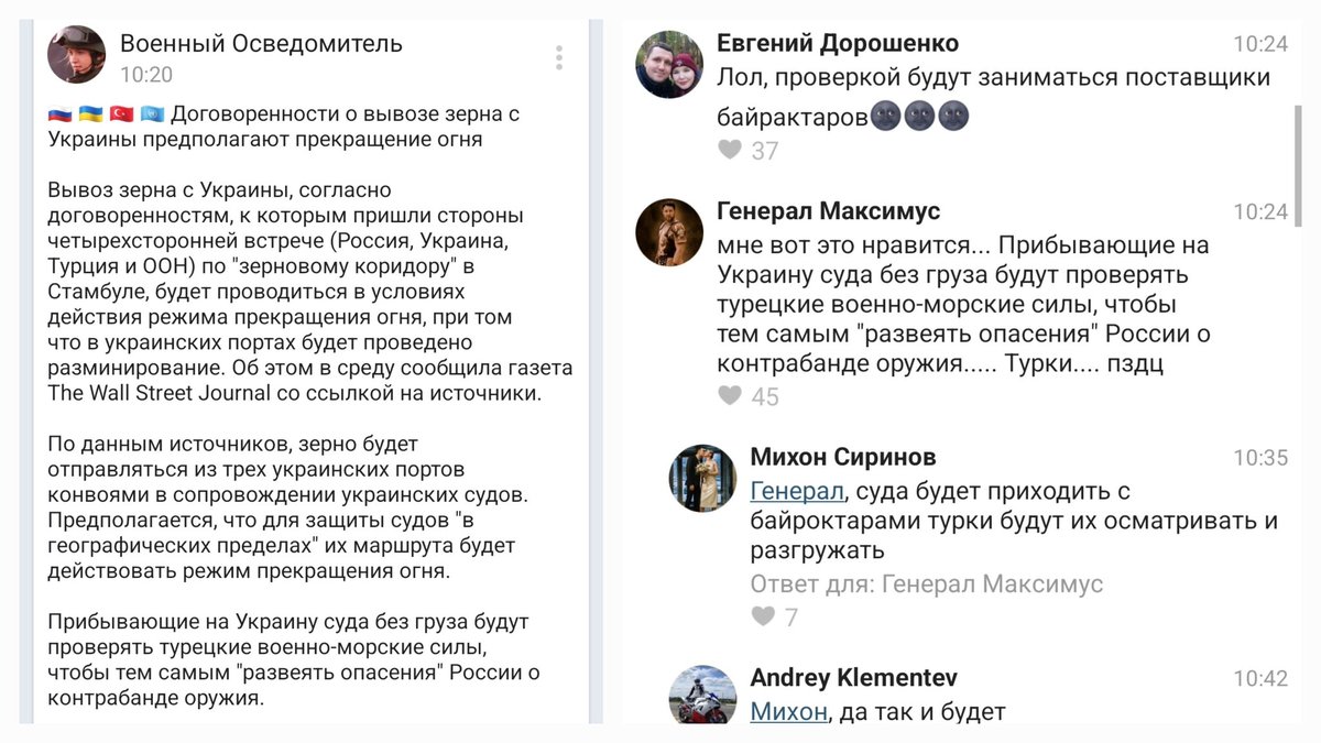 Вчора в новинах якось прослизнуло, що нібито домовились про тимчасове перемир"я на час вивезення зерна.